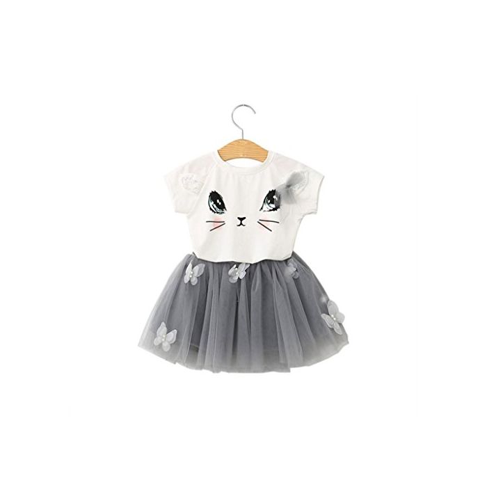 Tonsee 걸즈 스커트 세트 귀엽 고양이 패턴 반소매 베스트 톱+스커트 2점 세트
