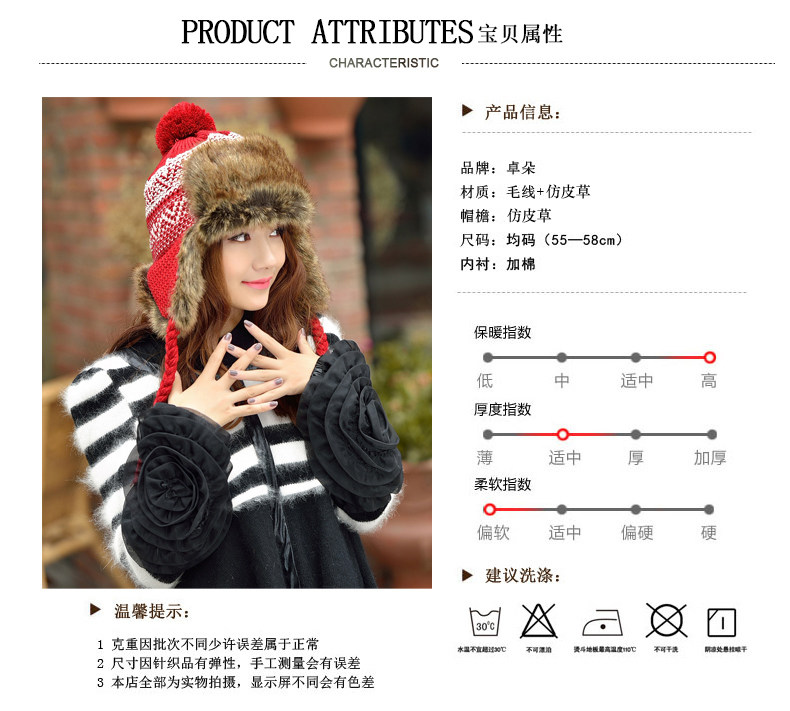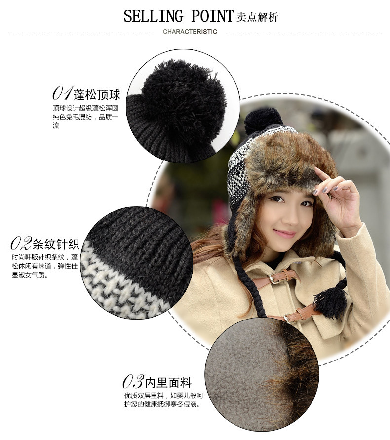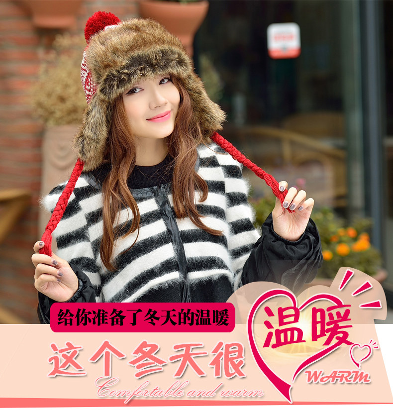 兔毛帽子女冬天针织毛线加厚雷锋帽时尚韩版加绒保暖护耳冬季皮草