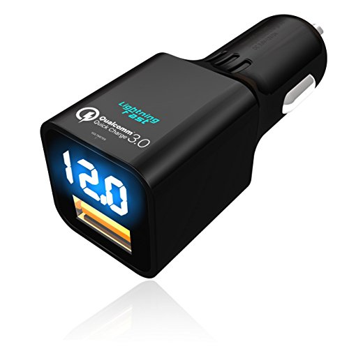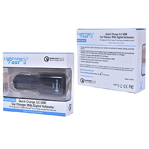 Qualcomm Certified Car Charger - Quick Charge 3.0 - 3 Amp - Digital Voltmeter Displays Rapid Power On Screen - 80% Battery Power In 35 Minutes - Keeps You Connected - Lifetime Guarantee