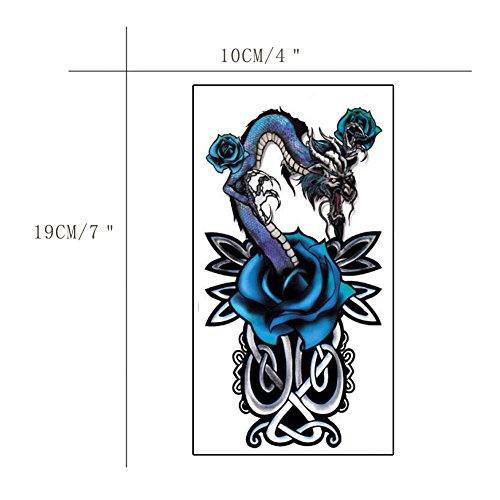 TAFLY Colorful Blue Rose Dragon Design Large Temporary Tattoo Stickers Big Waterproof Tattoos for Women Arm Leg Body Art 5 Sheets