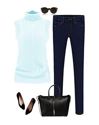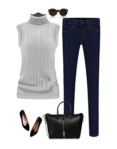 | (V28)/Women/Sweaters/DIRECT FROM USA/V28 Women's Sleeveless Ribbed Mock Neck Turtleneck Stretchable Knit Sweater Top |