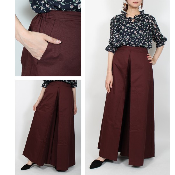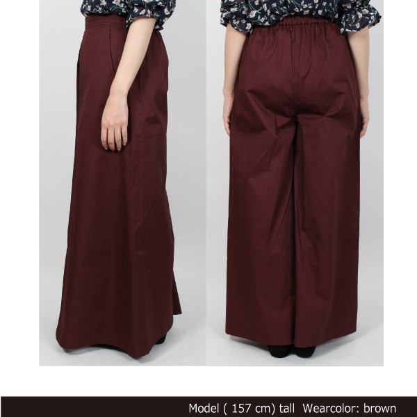 | 実寸 | ボトム丈:99cm、ウエスト:66cm(ゴム)、ヒップ:106+cm、前ワタリ:52.5cm、後ワタリ:40.5cm、前股上:34cm、後股上:35cm、裾周り:120cm、股ぐり:78cm |