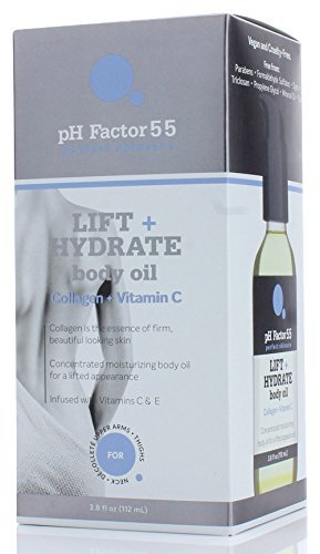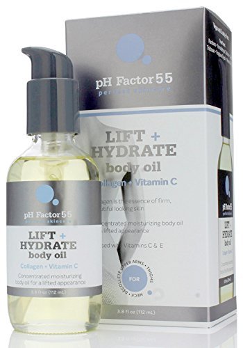 pH Factor 5.5 Life + Hydrate Body Oil diminishes the look of wrinkles using collagen infused with nutritive vitamins C and E.