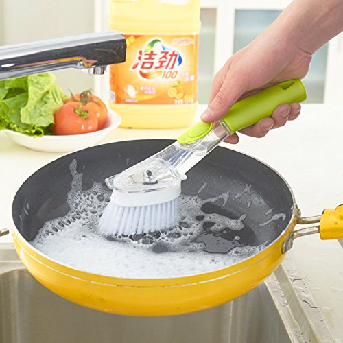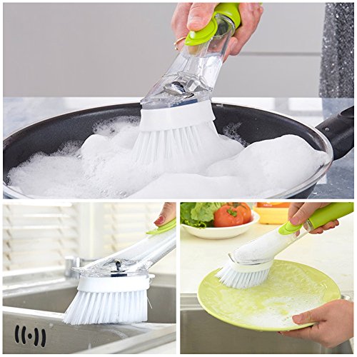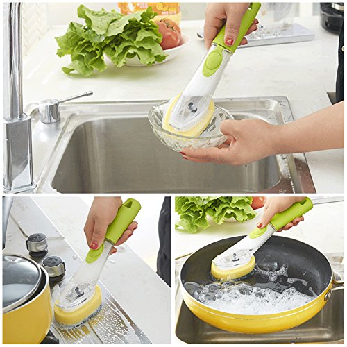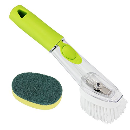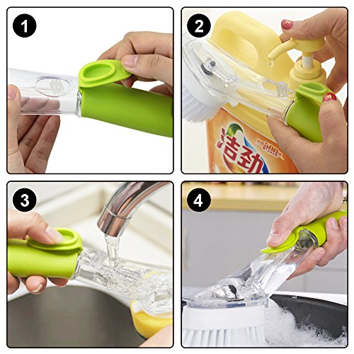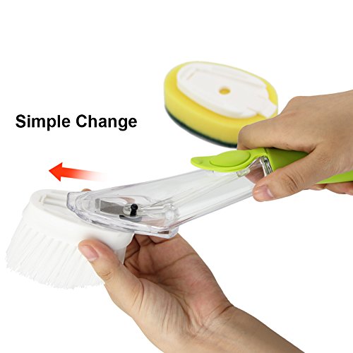 Kbnian Soap Dispensing Sink Brush with Dish Scrub Refill Sponge,Kitchen Washing Brush Set 2Pcs,Green