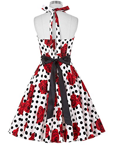 Floral/Polka dots printed 50s retro style A-line swing dress