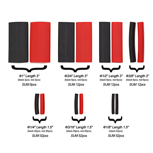 SwitchMe 198Pcs 3:1 Heat Shrink Tubing Double-wall Adhesive Lined Shrink Wrap Tubing Assortment Kit 7 Size 1" 3/4" 1/2" 3/8" 1/4" 3/16" 1/8" Mix Black Red