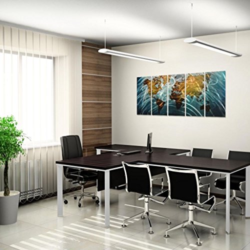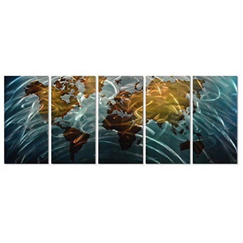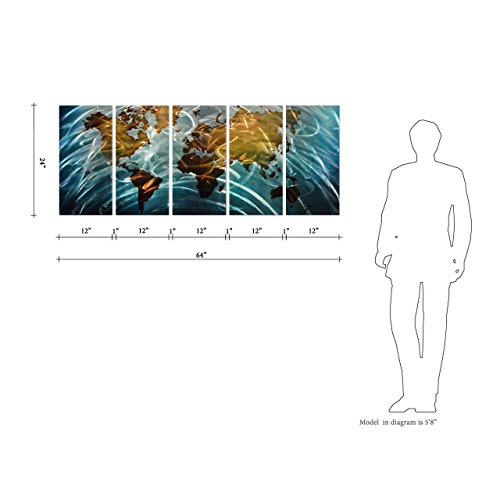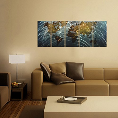 Pure Art Blue World Map Metal Wall Art, Large Scale Hanging, 3D Wall Art for Modern and Contemporary Decor, 5-Panel Abstract Contemporary Sculpture, 24"x 64", Works in Indoor and Outdoor Settings