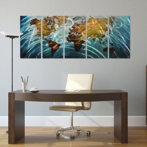 - UNIQUE HANDCRAFTED METAL WALL ART; Gorgeous blue world map metal wall art makes a big statement in any room and provides the wow factor you want; Complements contemporary, modern, and traditional décor