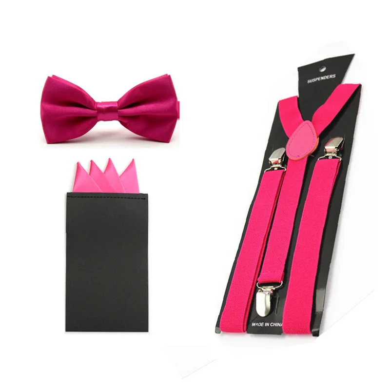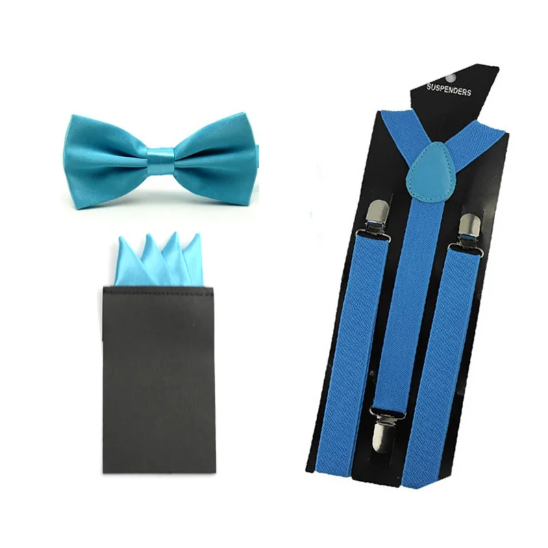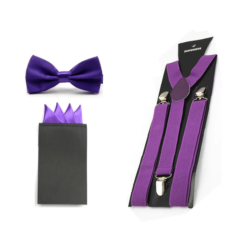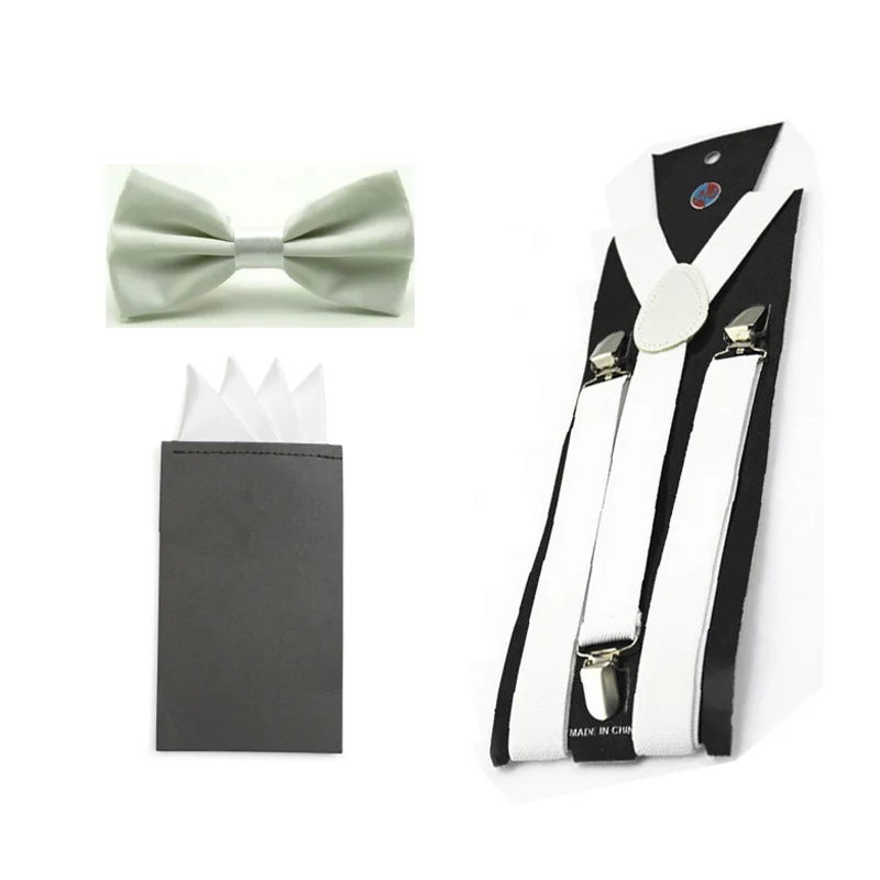 Package Includes: 1 x Bow tie + 1 x Pocket Square + 1 x Suspender