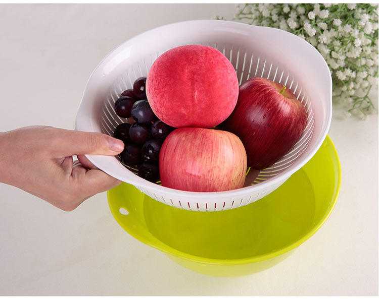 厨房洗菜篮塑料沥水篮圆形洗菜盆双层洗菜筐套装果盘果篮子