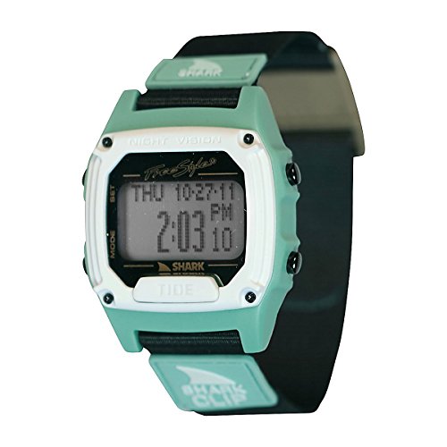 -. Feature : Japanese quartz digital movement, tide data for 150 beach locations, sunrise/sunset data, standard digi feature/backlight, polycarbonate case, hydro-pushers (under-water), canvas strap w/clip buckle / Durable hardened mineral crystal protects watch from scratches, water-resistant to 10 atm, 330 feet (100 m), and all with a limited lifetime warranty! / Japanese-quartz Movement / Case Diameter: 38mm / Water resistant to 100m (330ft): in general, suitable for swimming and snorkeling, but not diving
