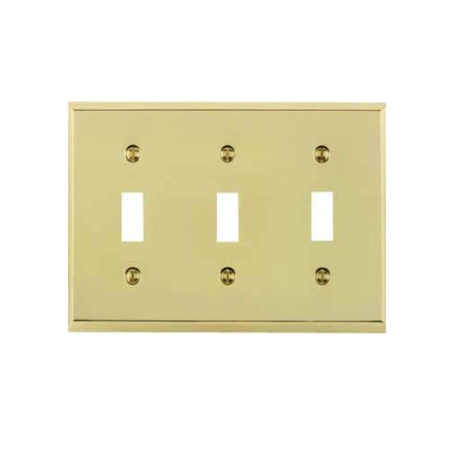 4770.030.CD Finish: Polished Brass Features: -Triple toggle switch plate.-Classic square bevel design.-Beveled edge. Color/Finish: -Polished brass finish.-Venetian bronze finish.-Satin nickel finish.-Polished chrome finish. Dimensions: -Overall dimensions: 4.5'' H x 6.5'' W.Feature