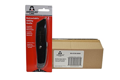 American Line 66-0330CT Metal Retractable Utility Knife with 3 Blades (Pack of 6)