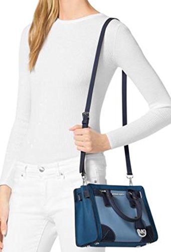 -. Brand : MICHAEL -. Color : Navy , Blue -. Department : womens -. EAN : 0191262031014 -. Feature : Leather, top zip closure / Measurements Approx: 10"L X 8" H X 4" W / Removable and Adjustable shoulder strap, 24" drop -. ProductGroup : Shoes -. ProductTypeName : HANDBAG -. Size : Small -. Title : Corner Frame Dillion Top Zip Small Satchel -. UPC : 191262031014