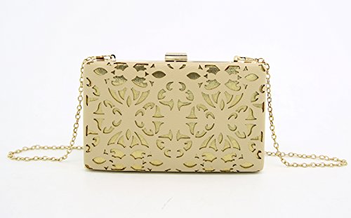 -. Brand : YESIR CREATION -. Department : girls -. Feature : 6"Lx1.1"Wx3.6"H / Laser cut PU / Golden frame closure / high density polyester lining / Golden chain strap -. Model : PTF10037 -. ProductGroup : Shoes -. ProductTypeName : HANDBAG -. Size : Small -. Title : Y.C. Bridal clutch Wedding Party Evening bag Wallet Hand Made Laser-Cut Purse