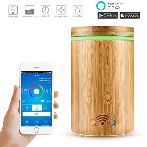 WiFi Smart Aroma Diffuser – Abedoe Bamboo Ultrasonic Essential Oil Diffuser Humidifier Mist Atomizer APP Remote Control / Voice Control with Colorful LED Light – Work with Alexa
