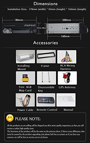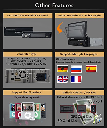 - Feature : Universal 1 Din Car DVD Player, Support CD/DVD/MP3/AVI£¬etc / Latest Windows CE 6 Operation System, Touch Screen with Resolution 800*480 / Built-in USB Port/Micro SD slot, Support IPod, FM/AM/RDS Radio / Built In GPS Navigation+ Free Map, Built-In Bluetooth for Hands Free Phone Calling and Music Playing / Sliding Touch Screen, Anti-theft Removable Front Panel