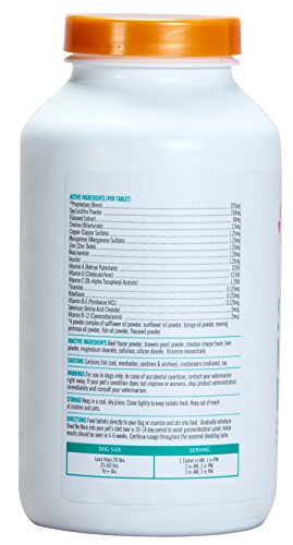 -. Feature : Great for dogs who exhibit unseasonal shedding / Veterinarian Recommended / Scored chewable tablets ensure easy and accurate dosage / Made in the USA / Beef and cheese flavored