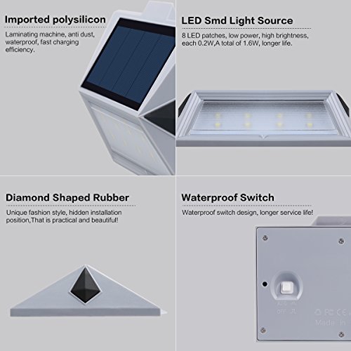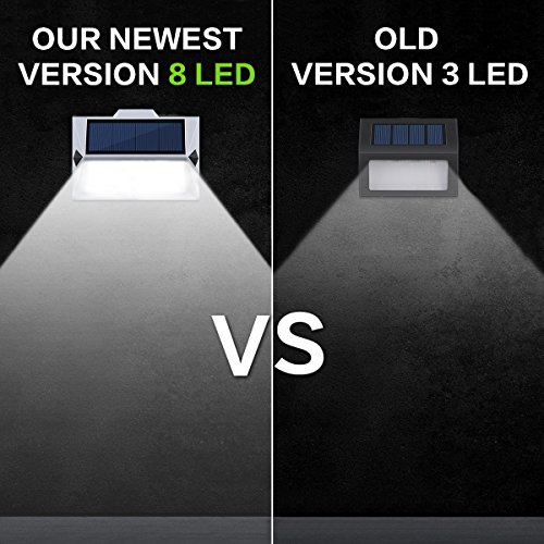 【SUPER BRIGHT 8 LED SOLAR LIGHTS】Each light features 8 LED ultra bright chips; 8 LED Design provides a super bright level of illumination for a wide area, which is much brighter than other similar 3 LED solar lights in the market.