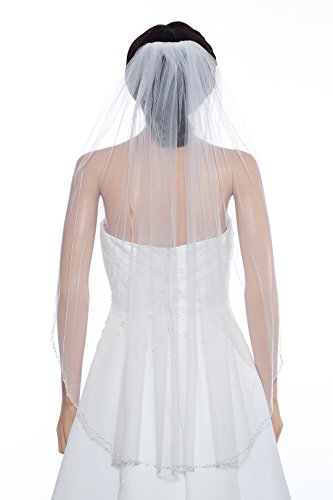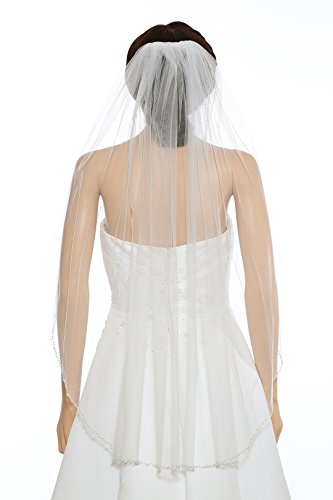 (SAMKY)/Accessories/Scarves/DIRECT FROM USA/1T 1 Tier Pearls Crystals Beaded Wedding Veil Fingertip Length 36"