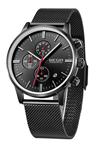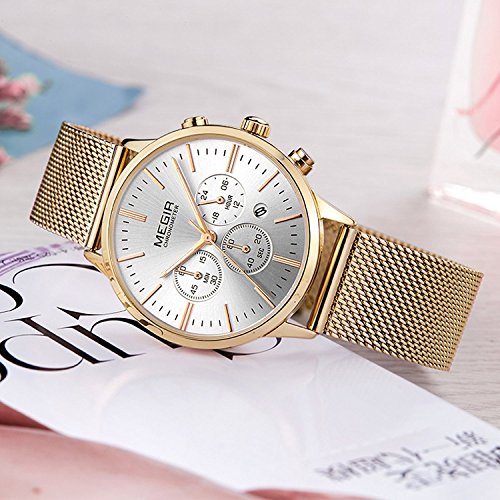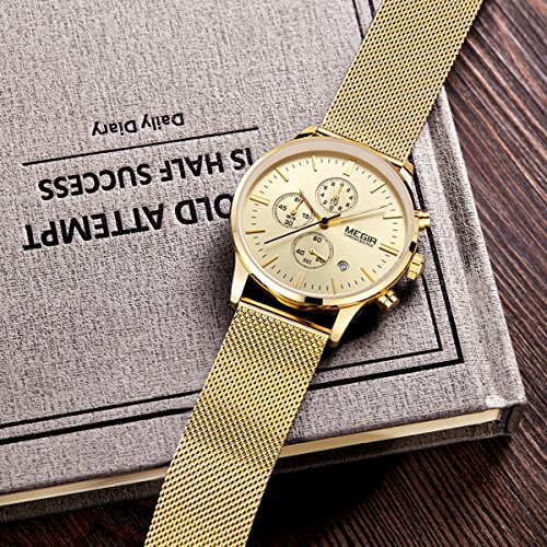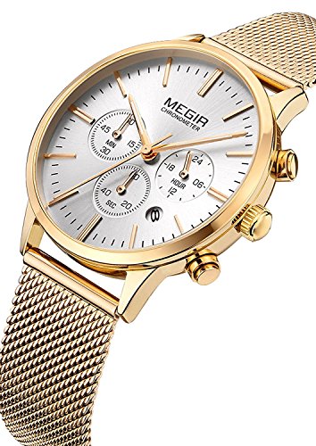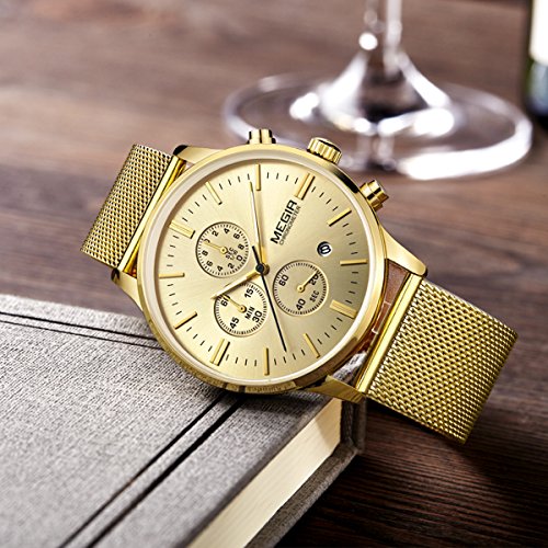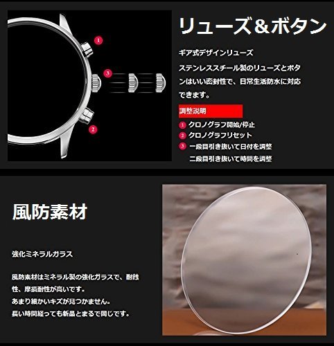 -. Feature : 腕時計機能:クロノグラフ機能、カレンダー曜日表示、12/24時間表示、防水防振技術 / 商品仕様:ケース直径:36.5mm  バンド厚み:10mm バンド幅18mm 重量:105g 商品詳細: 風防ガラス:強化ガラス、精密度の高い日本製クオーツムーブメント、日本製バッテリー、ステンレススチールバンド、合金メッキケース / 商品特徴: Three eyesレーシングスタイルデザイン、スポーツ感が強いです。メタルバンドでエレガントが感じできます。クロノグラフ運動機能が搭載、日常にとても便利で使いやすい腕時計です。カップルウォッチで、プレゼントやギフトとして恋人と一緒に使ってもおしゃれです。 / 防水:30メートル日常生活防水 (手洗いスプラッシュだけ、雨に濡れるな、シャワー、水泳、ダイビング等には対応していません) / 商品保証:商品到着後30日以内の返品・返金は受付可能; 初期不良の場合はメールよりご連絡を下さいませ。24時間内に対応いたします。