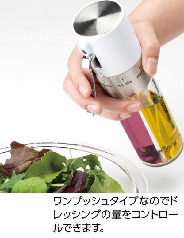 好きな割合でオイルとビネガーの組み合わせができる、ディスペンサーです。ワンプッシュでオイルとビネガーが同時に出ます。市販のドレッシングが苦手な方や料理が好きな方におすすめです♪ |