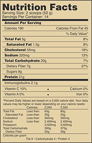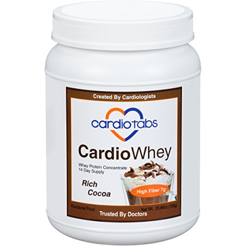 -. Binding : Health and Beauty -. Brand : CardioTabs -. Color : Brown -. EAN : 0183076000201 -. Feature : Preventive Cardiologist and Registered Dietitian Developed / 21 grams protein to support muscle health / High fiber - 7 grams / Gluten free / Delicious chocolate taste -. IsAdultProduct : 0 -. Label : CardioTabs -. LegalDisclaimer : Actual product packaging and materials may contain more and different information than what is shown on our website. We recommend that you do not rely solely on the information presented and that you always read labels, warnings, and directions before using or consuming a product. -. Manufacturer : CardioTabs -. MPN : 1112CH -. PackageQuantity : 6 -. PartNumber : 1112CH -. ProductGroup : Health and Beauty -. ProductTypeName : HEALTH_PERSONAL_CARE -. Publisher : CardioTabs -. Studio : CardioTabs -. Title : CardioWhey Rich Cocoa, Concentrate, 21 grams of Protein and 7 grams of Fiber per Serving -. UPC : 183076000201