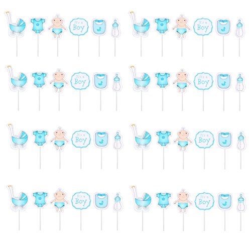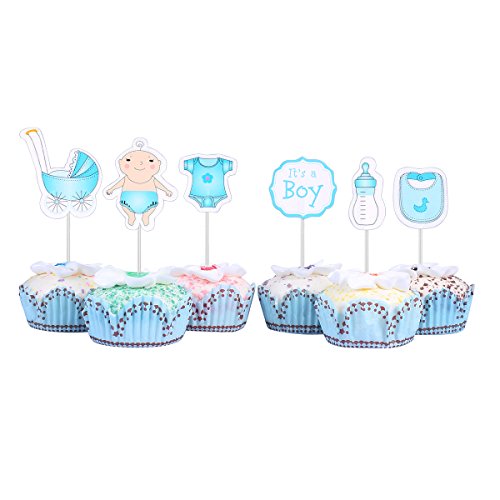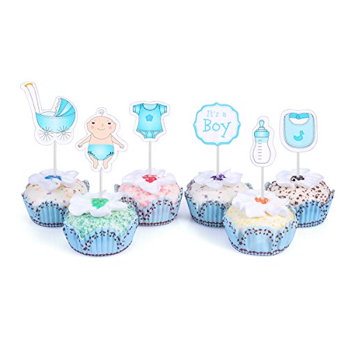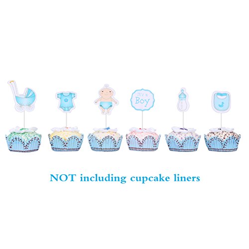 48 Cupcake Toppers for Baby Shower It's a Boy Kids Party Cake Decorations Blue