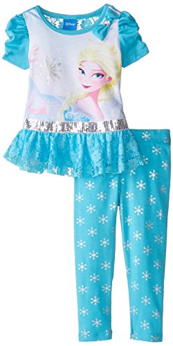 The perfect back to school outfit with a 2 piece Elsa screen printed tee and tacked on bow and tacked on tulle skirt. Lace trim. Legging