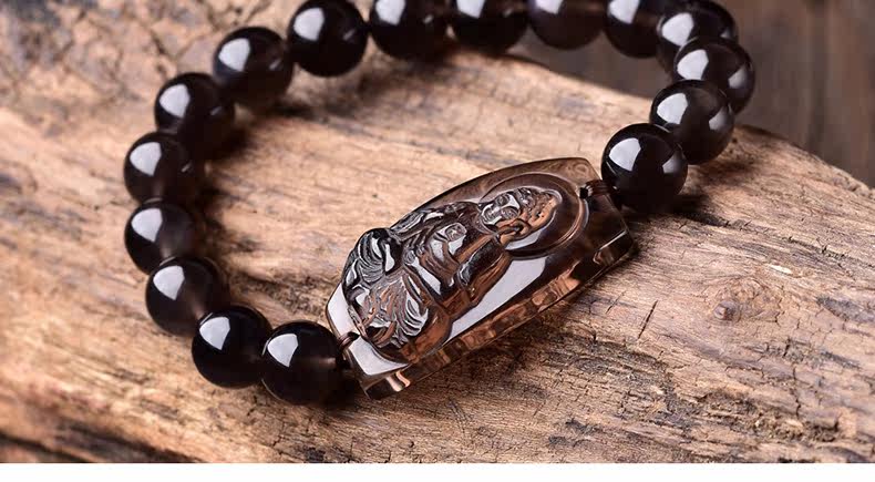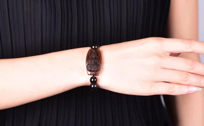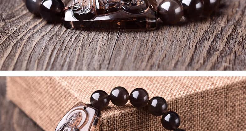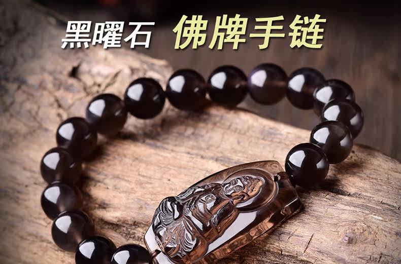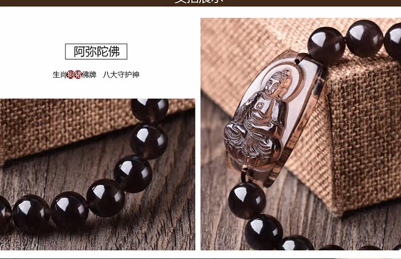 开光突然黑曜石阿弥陀佛手链属狗猪本命佛守护神 男女手链