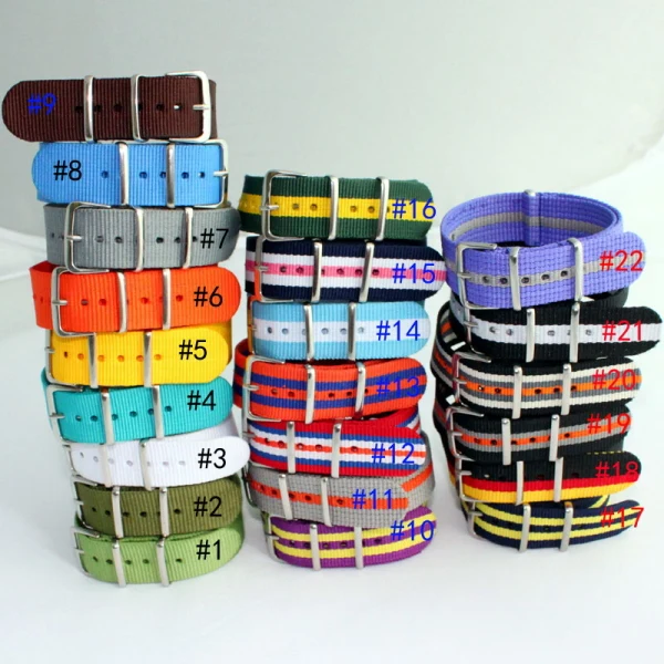 상품 내용 100% 새로운 브랜드! 최고 품질 20 미리메터 직물 나일론 스트랩 밴드 높은 품질의 프리미엄 나일론 (직물/캔버스/탄도 나일론) 밴드 폭: 20 미리메터 밴드 길이: 26.5 센치메터 많은 색상, 패턴, 줄무늬, 변형 stap 또는 watchface, 한 시계 수 하나 더 스트랩, 또는 스트랩, pls는 당신이! 범용 어떤 시계! 찾고 감사합니다. 포장 상세