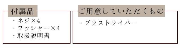 付属品ネジ×4、ワッシャー×4、取扱説明書