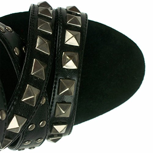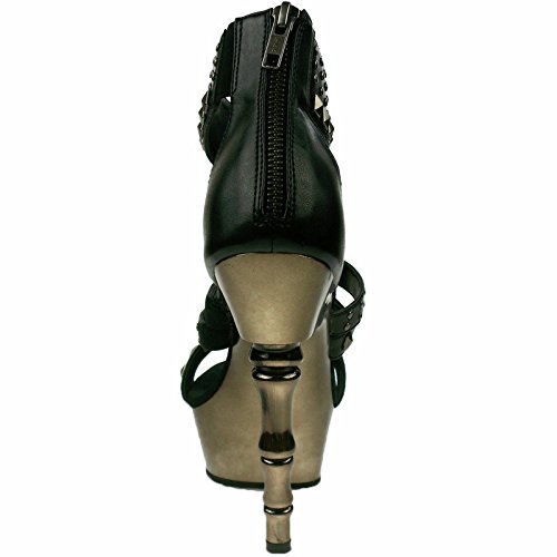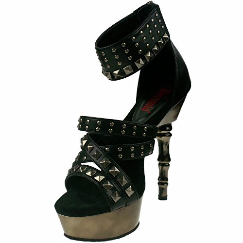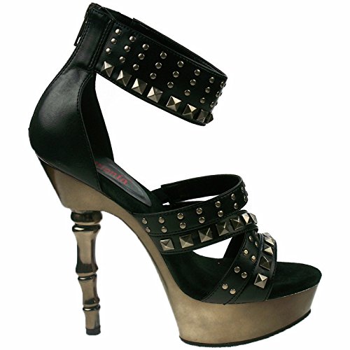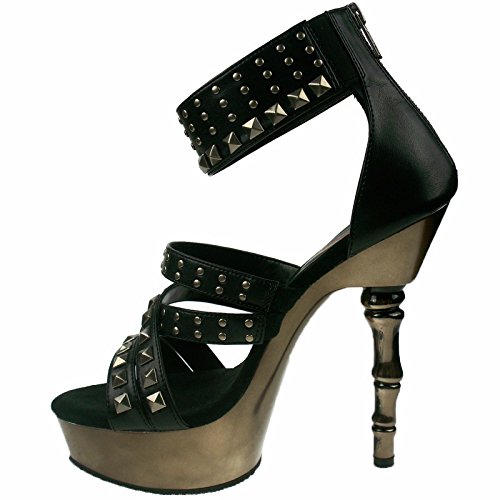 Product DescriptionHeel Height: Approx. 5 1/2' Tall. Platform measures approximately 1 1/2". Women's platform Strappy Sandal on 5 1/2" finger bone Heel. Featuring pyramid studding on Upper. Back Zip.0