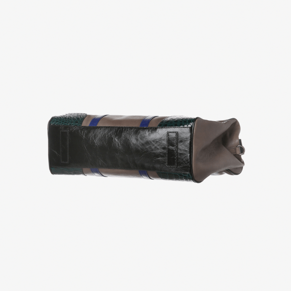 리베는 전체적으로 소프트하거나 하드한 느낌의 다양한 두께감과 재질을 가진 ITALY수입 가죽들의 조화가 재미있습니다. 멀티SKU는 토푸칼라 밀레토스램 양가죽에 블루,엘로우,그린,레드,블랙등의 칼라감 있는 가죽들이 조화롭게 믹스매치 된 것이 특징 입니다. 다크 그레이톤의 체크패턴과 함께 그린,블랙,블루,퍼플등의 칼라가 믹스된 스큐는 원단백이지만, 매우 고급스럽니다. 블랙 SKU는 밀레토스랩과 제이램 카키, 라미나또 블랙과 레드복스 가죽등이 콤비되었습니다. 뒤판 오픈포켓이 있어 실용적입니다. 외부 수납 공간 ?오픈 포켓 1개