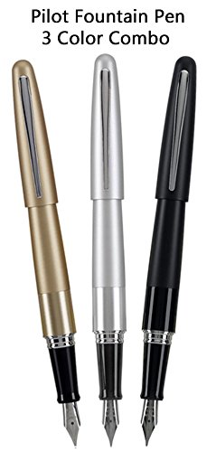 -. Feature : Deal Includes: One Black pen and one Silver pen and one Gold pen / Ships with 1 Pilot ink cartridge and 1 Pilot Press Plate Converter for each pen / Designed precisely for those who appreciate an exceptional writing experience. From the point of the nib to the end of the barrel, Pilot Fountain pens are expertly crafted from premium materials for the utmost in writing performance, feel, and reliab / Finest quality at a mid-range P.R.Ice / Medium nib