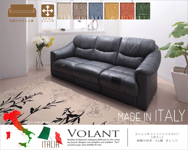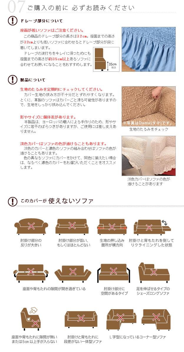 商品について:どんな形にも合わせやすいストレッチ素材のイタリア製ソファカバー。かぶせたら余った部分をソファのすき間に押し込むだけ。たっぷりとしたドレープと柔らかい凹凸が特徴。簡単模様替え♪洗濯OK