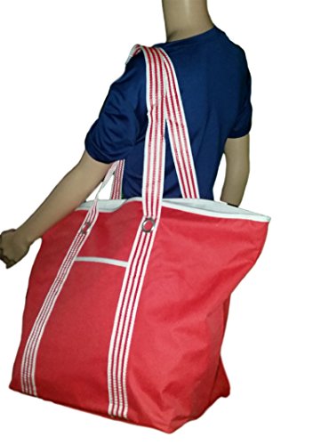 -. Brand : 101 BEACH -. Color : Multi -. Department : unisex-adult -. Feature : Dimensions Tote: 24" across top (while flat), 14" at bottom x 10" wide x 16" tall / Mesh webbing handles reinforced with double stitch and grommet / Cute Nautical Theme in available in 3 colors: Navy, Coral, Pink / Inner slip pocket with zipper top / 11.5" Drop -. Model : F2513 -. PackageQuantity : 1 -. ProductGroup : Apparel -. ProductTypeName : LAGE -. Title : XL Heavy Duty Beach Bag Tote with Zippered Top and Reinforced Mesh Handles
