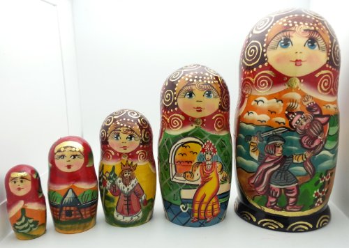 -. Feature : 5-piece Russian wooden nesting doll. Russian tale of Ruslan and Ludmila / Size: 6.5" Tall, 3.25" Diameter, set of 5. Hand carved and hand painted by Russian artist, signed. / Made in Russia from real wood. New condition from non-smoking home / Each item is hand painted and may have slight differences in details and color. / Quick (1-2 day) handleing time. Shipping from Los Angeles, CA Combine shipping: shipping for each next item from BuyRussianGifts store is just $0.99