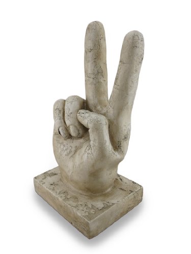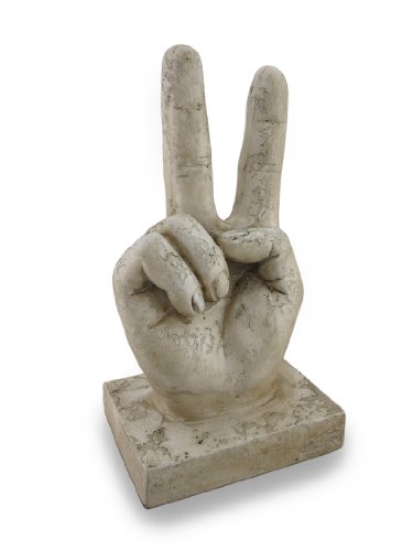 -. Title : Distressed White Polystone Peace Sign Hand Sculpture 13 In.