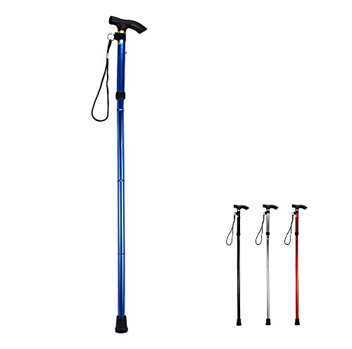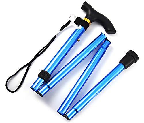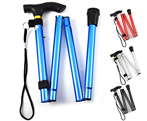 Studio : Heth Publisher : Heth Binding : Health and Beauty Product Description Features: - Height can be adjusted from 32 to 37 inches. - Four folding sections snap out automatically. - Comfortable contour grip with rubber tip, plastic handle with removable hand strap and brass collar. - Non-slip rubber base has increased wear-resistance. - Steady and rigid design, durable Aluminum construction. Material: Aluminum Alloy Color: Black, Silver, Blue, Red Best Use: Mountaineering, Hiking, Backpacking Package weight: 0.291 kg Package Dimension: 33 x 18 x 7 cm / 12.97 x 7.07 x 2.75 inches Package Contents: 1 x Folding Walking Stick Cane