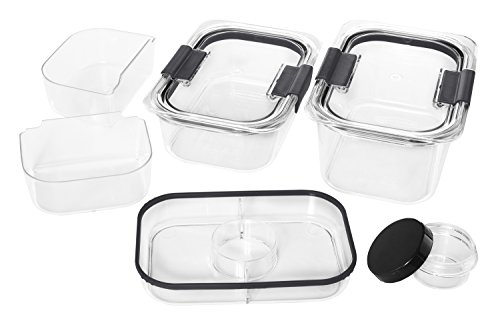 Studio : Rubbermaid Publisher : Rubbermaid Binding : Kitchen Product Description Thanks to its airtight seals and secure latches, this Rubbermaid Brilliance Salad/Snack Lunch Storage Container Combo Kit is guaranteed not to leak?allowing mess-free transport of your favorite greens, toppings, and dressings alongside small snacks, soups, and other sides. Each piece also sports a modular design that allows convenient stacking in your fridge or lunch bag, saving you some much needed space. No need to unstack and unseal multiple containers to find a specific dish; their crystal-clear Tritan construction lets you see what you've stored at a glance. This material also provides stain and odor resistance to keep the container spotless and fresh after every use. Want to heat up your toppings or your side of soup? Built-in vents allow steam to escape so you can microwave food without removing the lid. In addition to being microwave-safe, these Brilliance containers can also be placed in the freezer and the dishwasher without warping or discoloration. 0