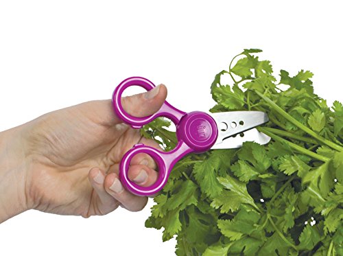 Mini Kitchen Scissors & Herb Stripper, Stainless Steel Blades, Fun Zing! Colors (Purple)