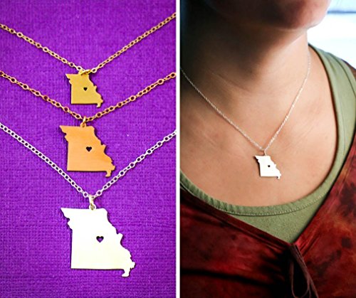-. Title : Missouri State Necklace - IBD - Personalize with Name or Coordinates - Choose Chain Length - Pendant Size Options - Ships in 2 Business Days - Sterling Silver 14K Rose Gold Filled Charm