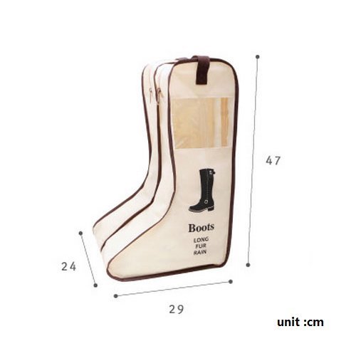 -. Feature : Dimensions(L*W*H):28cm*24cm*29; / 2 seperate compartments; / Keep your boots in tip top shape and free of dust and dirt; / Carrying handle and see through design; / Non-woven Fabric:ventilated and breathable.