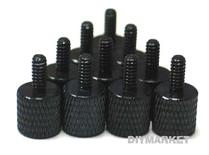 10 x Black Anodized Aluminum Computer Case Thumbscrews (6-32 Thread) for Cover / Power Supply / PCI Slots / Hard Drives