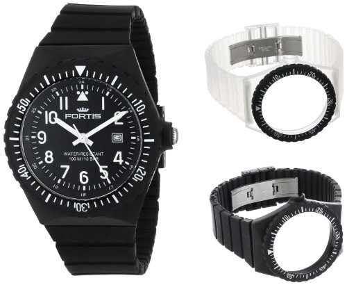 Fortis Colors C 704.01/02/40 Black Silicone Pop-Out Watch Set with additional White and Clear Strap