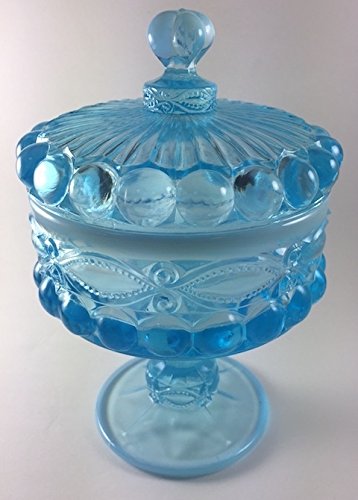 (Rosso Glass)/Kitchen Dining/Tableware/DIRECT FROM USA/Covered Compote - Eyewinker - Mosser Glass USA (Large, Blue Opalescent)