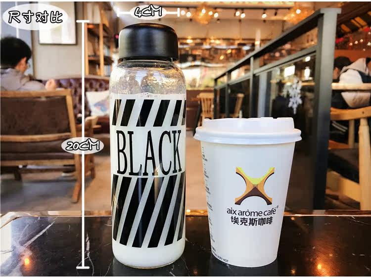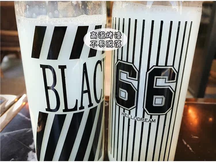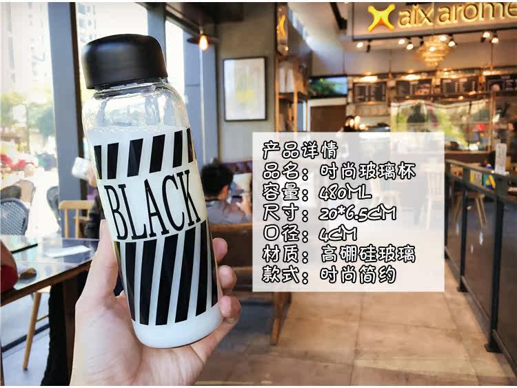 美式英文个性简约玻璃杯男女学生情侣带盖便携水瓶潮流随手水杯子