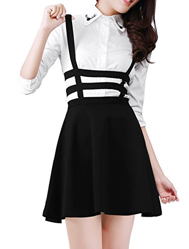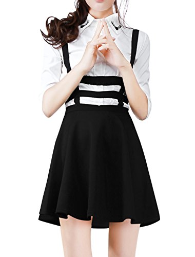 -. Feature : A Line Suspender Skirt / Stretchy Straps, Unlined, Exposed Zipper Back / Machine wash inside out / Model Body Size: Height: 5ft 3inches, Bust: 33inches, Waist: 25 1/4inches, Hip: 35 3/8inches, model is wearing a X-Small
