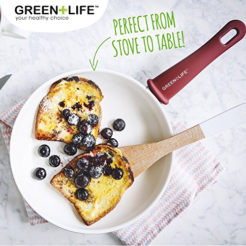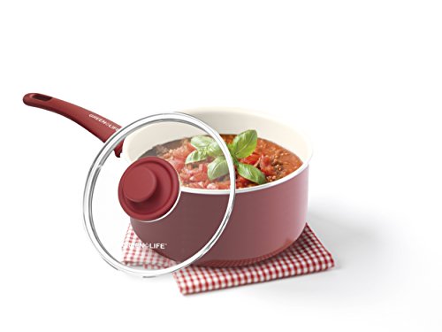 Studio : GreenLife Publisher : GreenLife Binding : Kitchen Product Description The GreenLife Soft Grip 14pc Ceramic Non-Stick Cookware Set, Burgundy makes the perfect addition to any kitchen. The high performance Thermolon ceramic non-stick coating is long lasting and easy to clean, made without PFAS, PFOA, lead or cadmium. The burgundy aluminum reinforced body adds a touch of style to your kitchen, while the matching soft-grip handles provide much-needed comfort. The glass lids allow for convenient monitoring while cooking and the dishwasher-safe construction makes cleanup a breeze. This set includes: 7” open frypan, 9.5” open frypan, 1QT covered saucepan, 2QT covered saucepan, 5QT covered stockpot, 2.5QT covered saute pan, and 4 kitchen utensils. 0